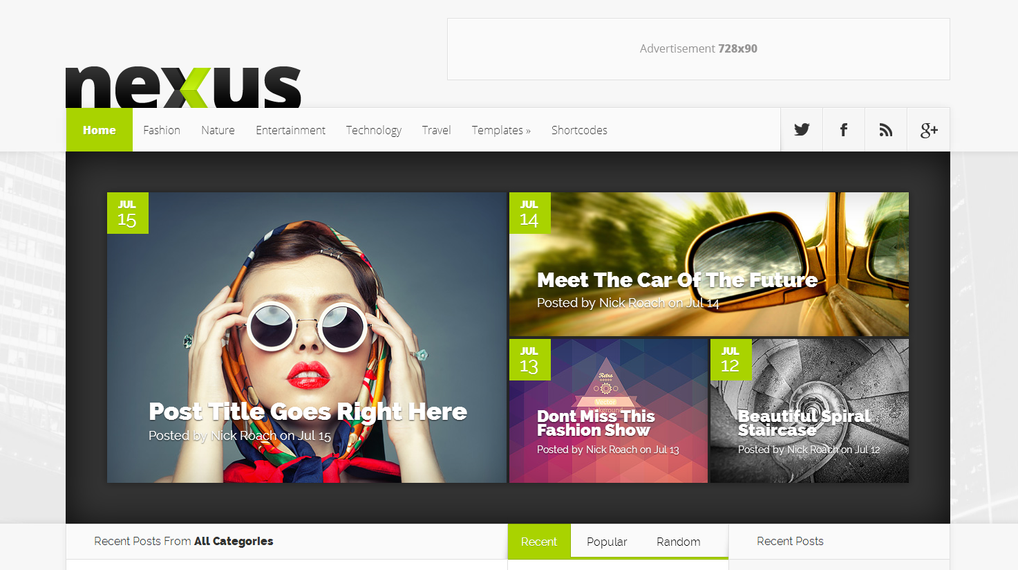 “Nexus is a versatile magazine theme packed full of custom widgets and content modules that give you control over your page. The challenge of any magazine theme is to take massive amounts of content and present it to the reader in a clear and structured manner. Nexus achieves this through a strict grid, typographical hierarchy and a clean layout that gives each element just enough room to breath.”