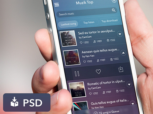 “Here is an iOS style music app user interface created with Photoshop. Free PSD designed and released by Mạnh Nguyễn Tiến.”