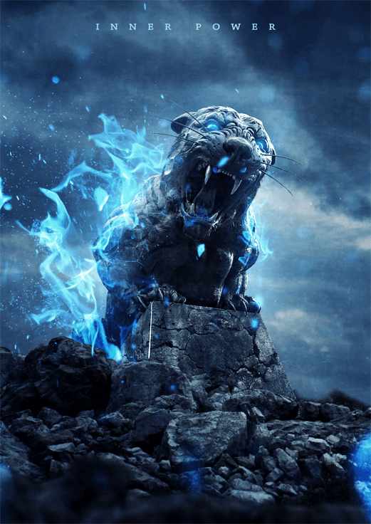 How to Create an Intense Composite of a Stone Tiger with Blue Flames