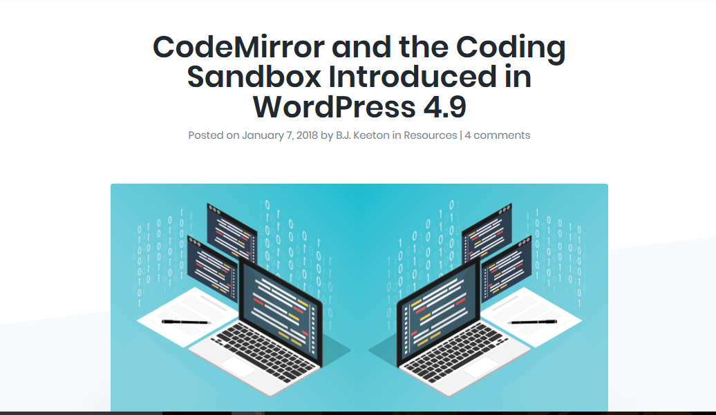 For more information, make sure to check out the Elegant Themes article, “CodeMirror and the Coding Sandbox Introduced in WordPress 4.9” it goes into great details about CodeMirror and the Coding Sandbox.