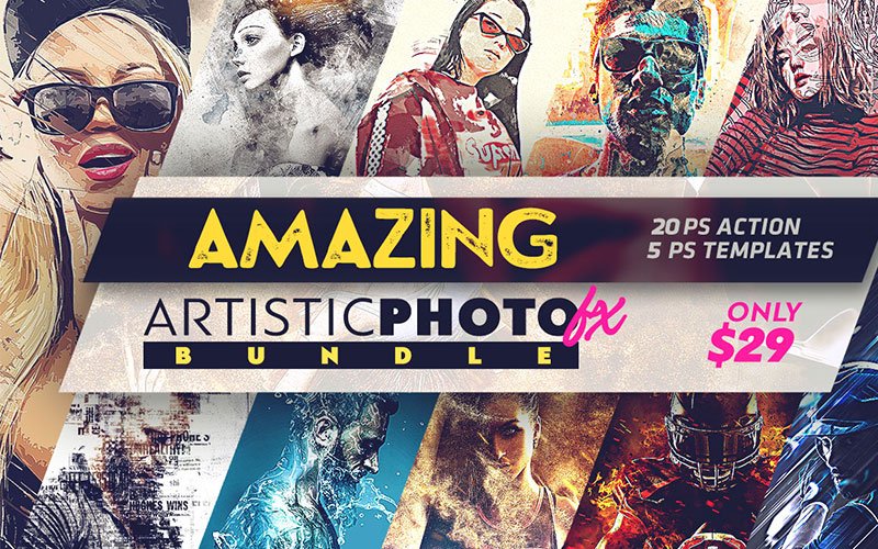 Create Amazing Artistic Photo FX with this unique and special Photoshop effects bundle. This deal gets you a great collection of 25 art effects.