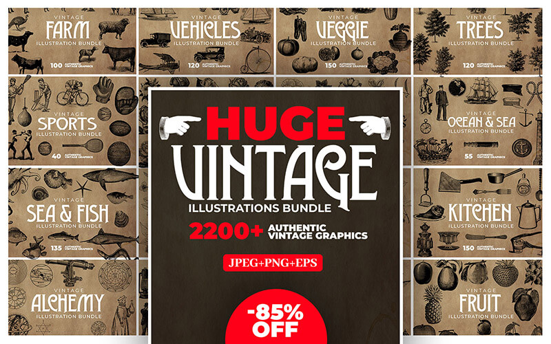 Are looking to use vintage designs in your projects? Maybe looking to create vintage T-shirts? If so, take a look at look at this deal from InkyDeals. Its the 2200+ Vintage Illustrations Bundle. It has everything you need to add vintage illustrations to your projects and products.